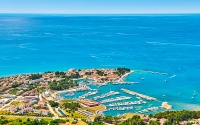 Strand: kék zászlós strand; köves és kavicsos, rendezett, zuhanyzókkal felszerelt